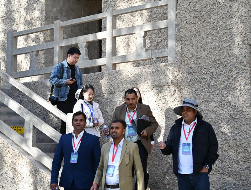 10月13日,2025“世界市长对话·敦煌”在甘肃敦煌举办。日前,中外嘉宾200人走进敦煌莫高窟,欣赏精美绝伦的壁画和彩塑,感受敦煌千年文化的深邃内核;在莫高窟窟顶,了解莫高窟风沙环境综合治理项目。