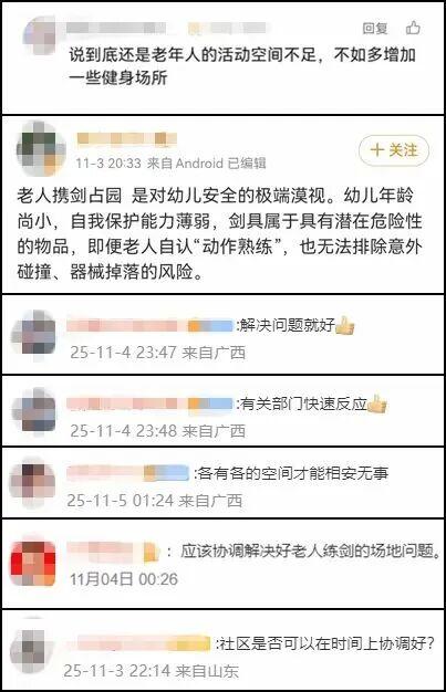老人强占幼儿园操场练剑后续来了,网友点赞!