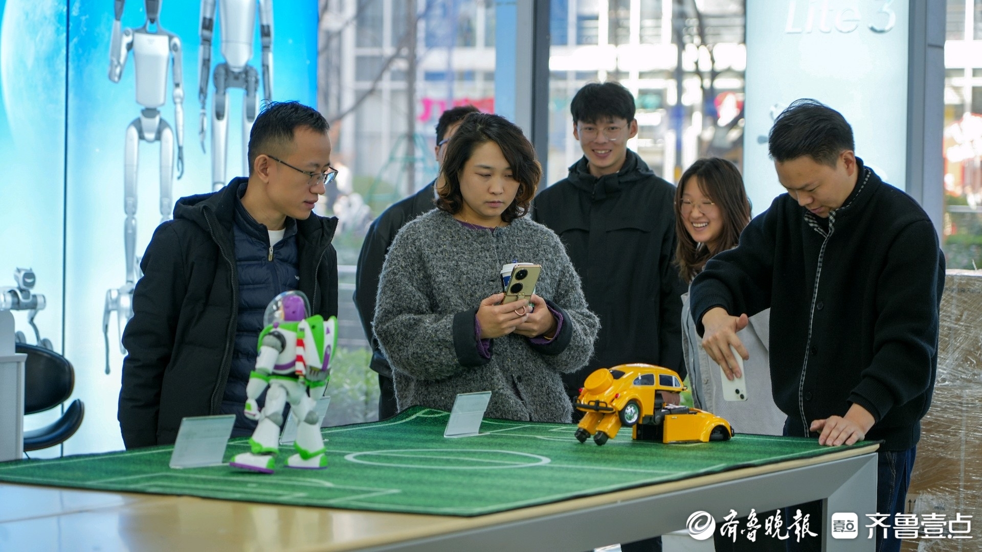12月1日上午,在济南高新区汉峪金谷政金大厦,不少市民一进门便直奔预见未来机器人6S中心。走进店内,展区陈列着数十个品牌的产品,从几百元的桌面机器人到几十万元的人形机器人、工业机器人,覆盖家庭服务、工业生产、商业运营等多元场景。不同于线上销售的“参数化展示”,这里采用场景化体验模式,让用户直观感受产品性能。