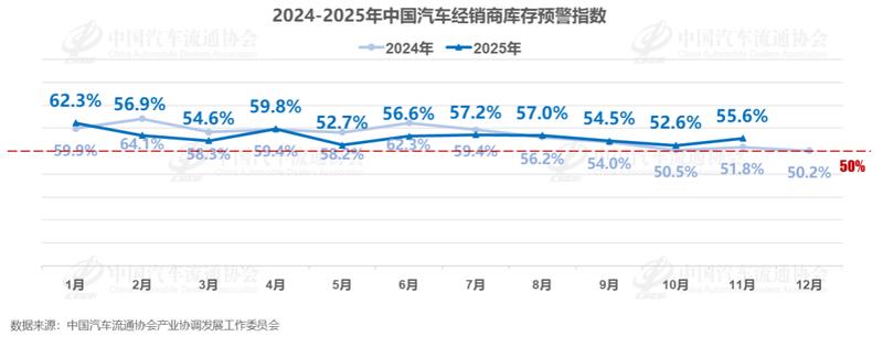 11月中国汽车经销商库存预警指数为55.6%,同比上升3.8个百分点,环比上升3.0个百分点。库存预警指数位于荣枯线之上,汽车流通行业景气度有所下降。樊宇指出,当前经销商普遍面临客户流量减少、市场观望情绪增加带来的需求收缩,以及新车销售利润空间收窄等挑战。